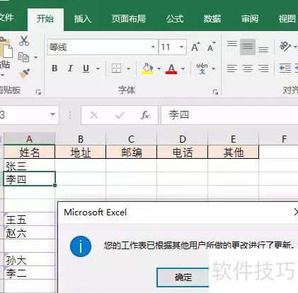 7. 点击保存时,Excel会弹出提示:您的工作表已根据其他用户的更改完成更新,确认后,他人修改的数据将自动合并至当前文件。