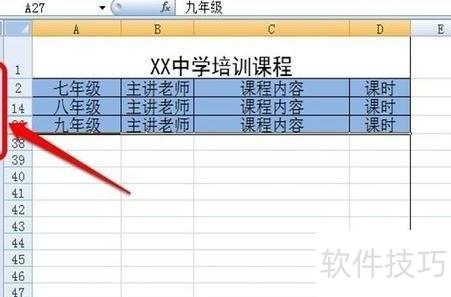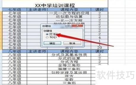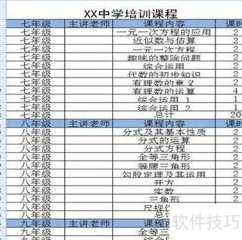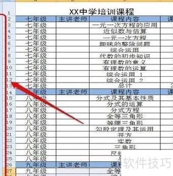 如何设置才能在打开的表格中,只查看七、八或九年级中某一个年级的培训课程?