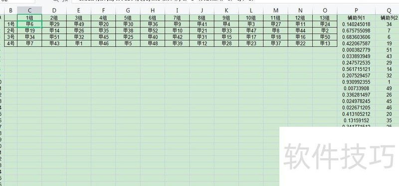 用随机函数RAND生成随机数,通过P、Q两列建立两个辅助列来实现,你可根据实际情况选择其他空白列操作即可。