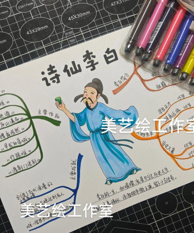 背景不要复杂,要能衬托主体,山水是很好的选择,画些远山,淡淡的,近处有点流水,或者几块石头,意境就出来了,月亮更是经典,一轮明月挂在天边,清辉洒在李白身上。