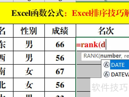 语法结构为:=Rank(数值,数据范围,排序方式)。排序方式有1和0两种,0表示降序,1表示升序,若省略则默认按0处理。