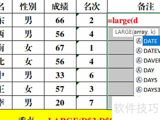 Excel中常用的排名函数公式包括Rank函数、Sumproduct函数、IF函数、Max函数和Large函数等方法。