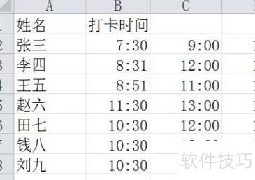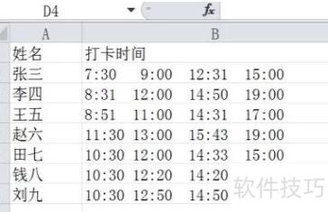 将每个人的姓名与对应打卡时间逐一录入Excel表格中。