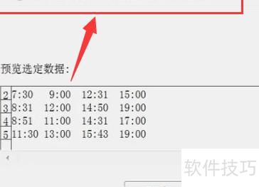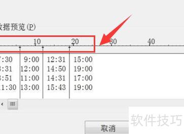 在文本分列向导中,调整列表位置以分离各时间点,然后点击下一步按钮。