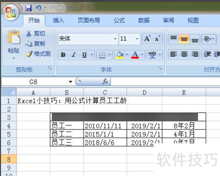 将公式下拉填充至其他工龄单元格,仅能计算整年工龄。