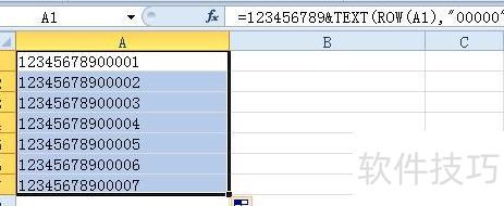 当处理具有规律的长串数字时,可利用公式实现自动递增。例如前九位固定为123456789,后五位按顺序递增,可使用公式:=123456789&TEXT(ROW(A1),00000),向下填充即可自动生成连续编号,简便高效。