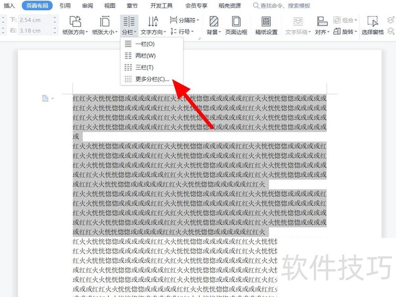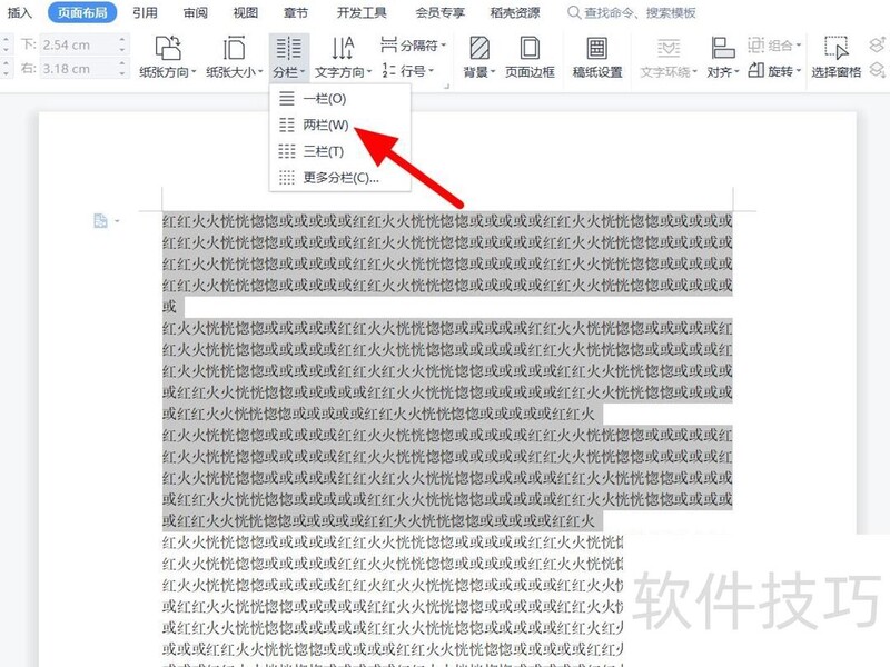 在文档中选中需分栏的内容,点击布局或页面设置中的分栏选项,选择所需栏数即可完成设置。