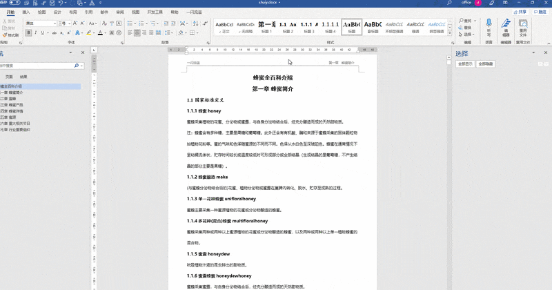 随后可见选择窗格中包含一个文本框,点击该框时,文档中的文字水印随之被选中。