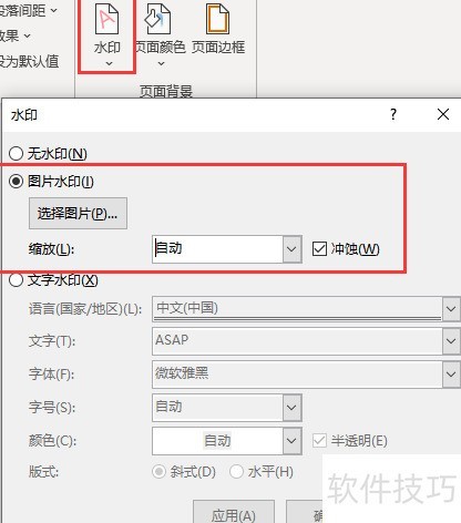 可通过设置图片水印或在页眉插入图片的方式,实现文档中图片水印的添加效果。