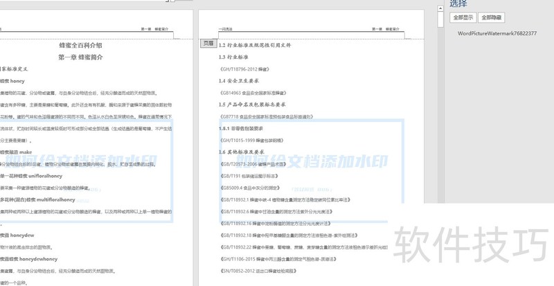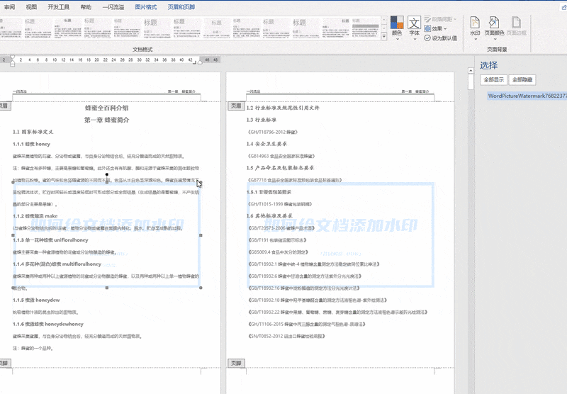 退出页眉后,发现多个文字水印已生成。