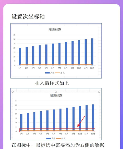 若需在图表中添加次坐标轴,可按照以下步骤操作。首先,选中图表中的某一数据系列,例如柱状图或折线图中的某一条数据线。接着,使用鼠标右键点击该数据系列,在弹出的菜单中选择数据系列格式。进入该窗口后,切换至坐标轴选项,勾选次坐标轴。此时,数值(Y)轴的次坐标轴即被激活,并会在图表右侧显示出来。