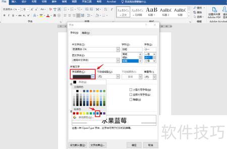 选字体颜色,弹出白框后点击蓝色选项。