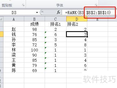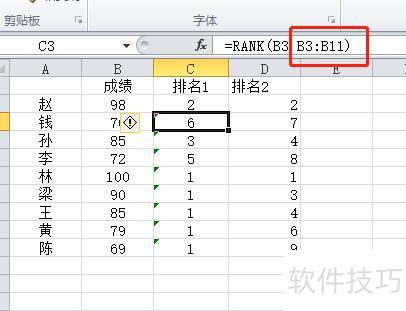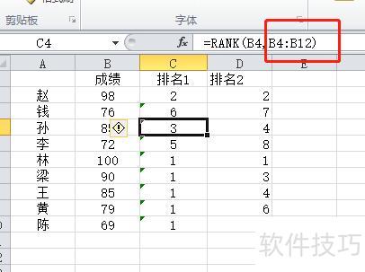 同理,若未使用$符号,向下拖动时单元格范围会从B4到B12,无法包含前两个数值,导致排序范围不断变化,结果错误,最终会出现多个第一名;而添加$后,排序范围被固定锁定,无论拖动到何处,范围不变,从而确保排名结果准确无误。
