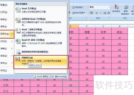 将鼠标悬停于下拉菜单中的另存为选项,再次展开后点击其他格式按钮即可。