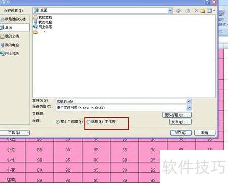 单击后所示,选择后面的选择(E)工作表选项,确认后点击下方保存按钮即可。
