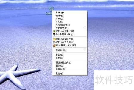 点击保存按钮后退出Excel工作表,找到之前另存为单个文件网页(*.mht;*.mhtml)的文件,选中该文档,单击鼠标右键,即可看到所示的界面。