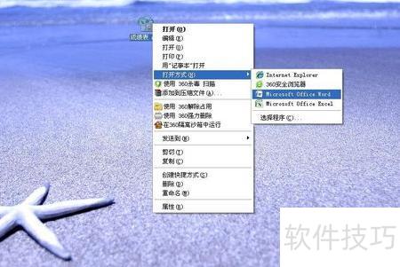 右键单击后,将鼠标移至打开方式,在下拉菜单中选择Microsoft Office Word即可打开文件。