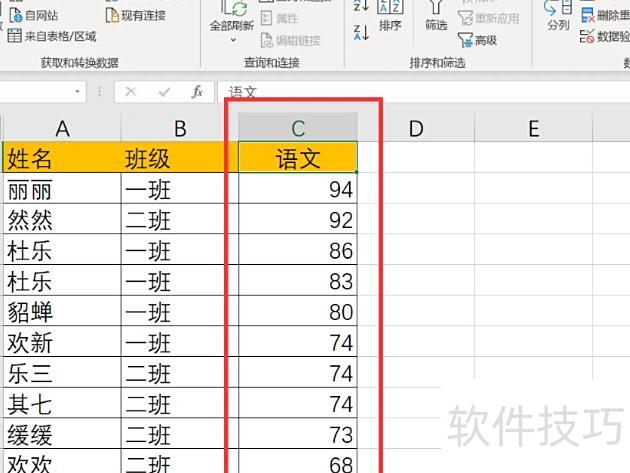 打开Excel,选中成绩列,点击数据菜单中的排序功能进行操作。