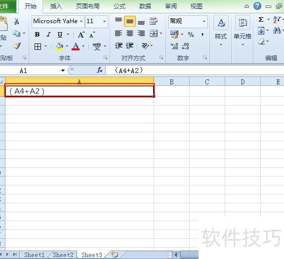 在单元格中输入A4+A2,表示先计算A4与A2的和,所示。