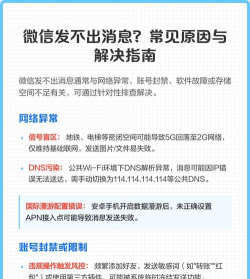 微信突然发不出消息,真让人着急,你可能遇到过这种情况,聊天框里打字,却怎么也发不出去,那个小圈圈一直转,最后变成红色感叹号,这到底是怎么回事呢,别担心,其实原因有很多,但大多都能自己解决,今天,我们就来聊聊,微信消息发不出去的常见原因,以及对应的解决方法,帮你快速恢复沟通。