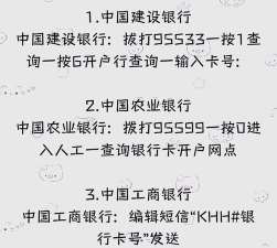 总之方法有很多,你可以根据自己的,实际情况和习惯,选择最顺手的一种,手机APP最推荐,因为确实很方便,客服电话最直接,网点查询最可靠,网上银行最详细,多尝试几次就熟悉,再也不用担心,忘记开户行信息了。