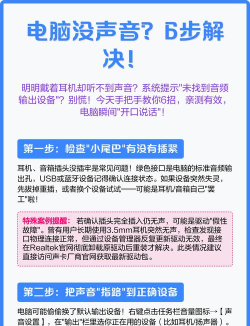 1、检查基础设置与硬件连接别急着重装系统,从最简单的开始,检查一下音量图标,是不是被静音了,或者音量被调到了最低,然后,看看你的音箱或耳机,电源开关开了吗,插头插紧了吗,特别是耳机孔,有没有插错位置,很多电脑有前后两个音频接口,试试换一个插孔,有时候,仅仅是接触不良而已。