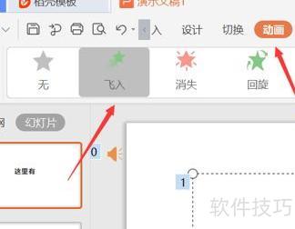 音乐设置完毕后,添加动画效果。点击动画选项,选择飞入即可。