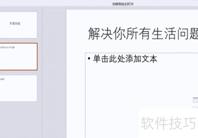 每页动画设置完成后,仅在强调短语时添加切片动画,并非每页都需要。