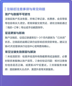 1、注销前,这些准备必须做你得登录账号,检查所有订单,确保没有进行中的,比如外卖在送,酒店待入住,或者团购券还没用,这些都得先处理完,不然注销不了,看看钱包余额,还有各种优惠券,比如红包、代金券,能用的赶紧用掉,因为一旦注销,这些钱和券就都没了,找不回来的,解绑第三方授权,比如微信、支付宝,还有免密支付,都记得关掉,这样更安全,避免后续纠纷。