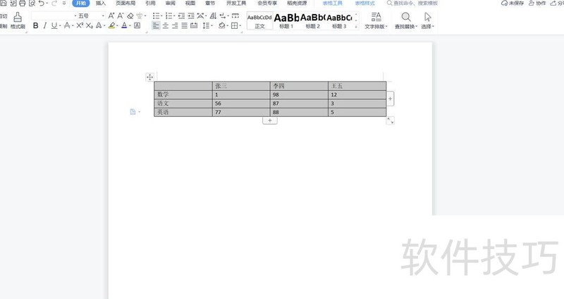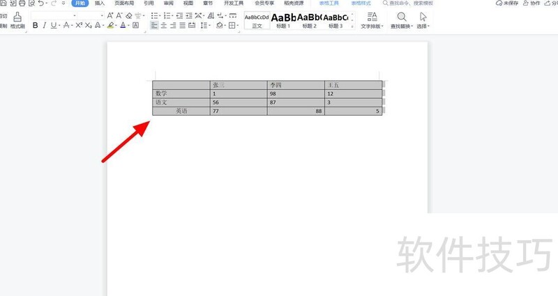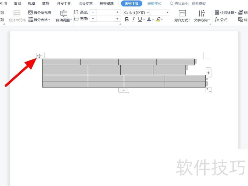 在文档页面,点击左上角四向箭头以全选表格。