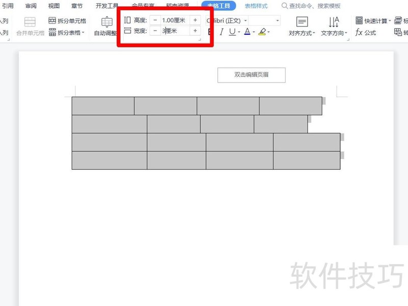 在表格工具中设定高度与宽度,统一尺寸后,表格即可对齐。