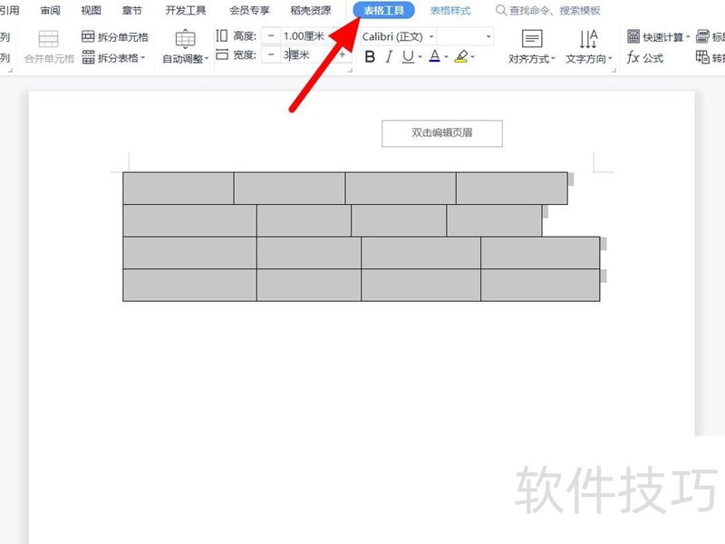 全选表格后点击表格工具按钮。