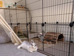 2、给它一个舒适安全的家兔子到家前,你得准备好它的窝,笼子是最常见的,但一定要够大,让它能站起来,还能跳几步,笼底最好,是平整的塑料板,上面铺上宠物尿垫,或者专用的垫料,铁丝网底的笼子,容易伤到它的脚,所以不推荐,笼子里,要放一个食盆,一个滚珠式的水壶,还有一个草架,以及一个厕所,兔子很聪明,可以训练它,在固定地点上厕所,这样打扫起来,会方便很多,除了笼子,你还需要,给它准备一个,可以自由活动的空间,比如围栏围起来的区域,让它每天,能出来跑跑跳跳,这对它的身心健康,至关重要,但要注意,活动区域里,电线要收好,家具边角要包好,防止它啃咬,或者撞伤。