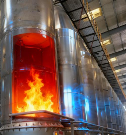 2、高温熔融,沙子在烈火中蜕变混合好的原料,被送进熔窑,熔窑温度极高,能达到1700摄氏度,在这个温度下,固体原料开始融化,变成炽热的液体,这个过程,叫做熔融,熔融需要很长时间,目的是让原料充分反应,同时,去除里面的气泡,熔融后的玻璃液,像粘稠的糖浆,但它透明清澈,这时,玻璃就基本成型了,但还很烫,不能直接使用。