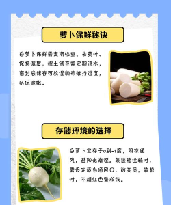 1、 整根萝卜的常温保存法这个方法最简单,适合短期存放,买萝卜时要挑新鲜的,表皮光滑无破损,叶子翠绿挺拔的,回家后,千万不要清洗,带着泥土反而更耐放,然后,找个阴凉通风的地方,比如北阳台或厨房角落,用报纸或厨房纸,把萝卜整个包裹起来,这样可以吸潮,也能避免磕碰,把包好的萝卜,竖着放在纸箱或篮子里,记住,一定要竖着放,模拟它生长的状态,这样能有效延缓水分流失,防止糠心,这样保存,放上一两周,基本没问题。