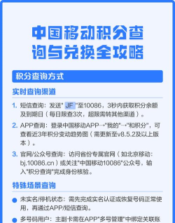 现在大家,都用智能手机,下载一个,中国移动APP,非常方便,打开APP后,用手机号登录,在首页或者,我的页面里,很容易找到,积分查询的入口,点进去,不仅能看总积分,还能看到,积分的明细,比如,什么时候获得的,因为什么获得的,以及,什么时候会过期,APP里还能,直接兑换积分,查看可兑换的商品,功能非常全面,是管理积分,最好的工具。