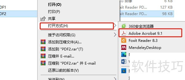 选中PDF文件,右键点击打开方式,选择Adobe Acrobat进行编辑。