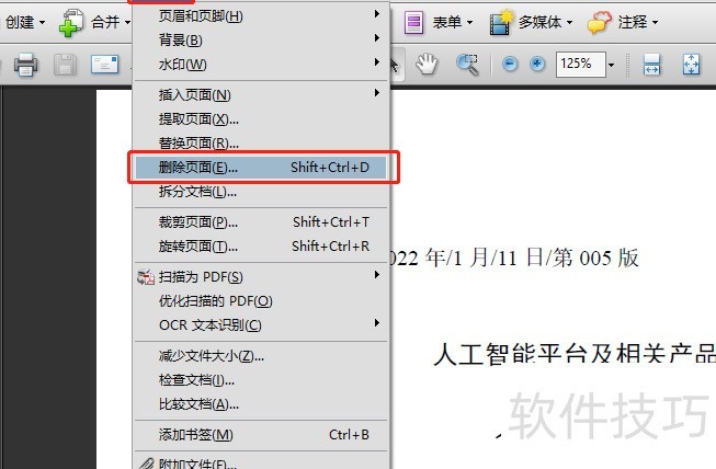 打开后,点击顶部工具栏中的文档,再选择删除页面功能。