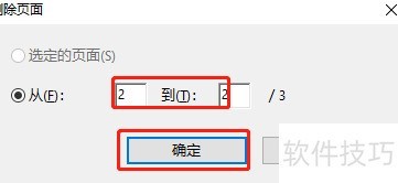 在弹出的对话框中显示PDF页数,选择需删除的页面,例如该3页文件,删除第2页。
