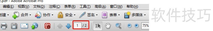 完成删除页面操作后,工具栏显示文件已变为2页。