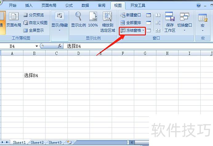 要冻结前3行,需先选中第4行,不可冻结中间行。