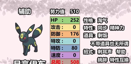 4、进化后的培养与实战进化成功只是开始,培养才是重点,月亮伊布是纯恶属性,抗性很不错,它最大的特点是耐久超高,血量与防御都很出色,它是一个优秀的盾牌,技能搭配上,推荐“欺诈”、“月光”、“剧毒”和“许愿”,这套组合能消耗对手,同时保证自身回复,努力值方面,建议主加HP和防御,让它更能扛,在队伍中,它可以作为坚实的后盾,为队友创造输出机会,非常可靠。
