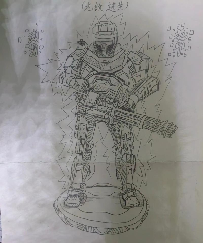 4、光影与质感,让机甲活起来最后一步,上光影,确定光源方向,在受光面提亮,背光面加深,金属质感,靠高光和反光表现,用笔硬朗些,线条干净利落,加上环境色,机甲就更立体了,看起来,就像真的一样。