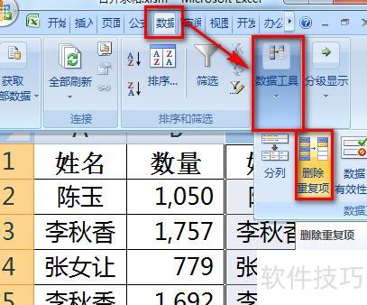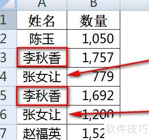 A列为姓名,含重复项;B列为数量,需统计每个姓名对应的数量总和。