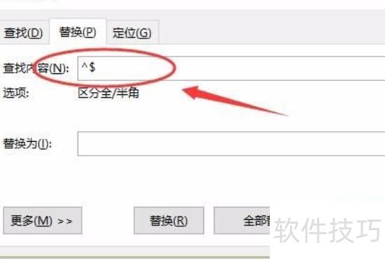 在替换框的查找内容中输入^$,随后点击全部替换即可完成操作。