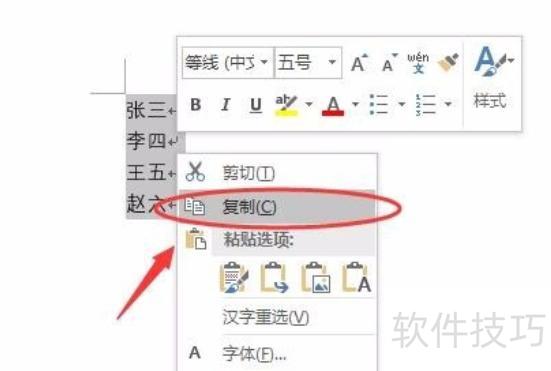 选中内容后右键点击,从菜单中选择复制选项。