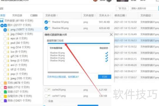 扫描完成后,可通过文件路径或类型查找需恢复的视频。