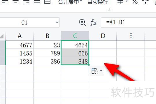 选中第一个结果单元格,将鼠标移至其右下角,待光标变为黑色加号后向下拖动,即可自动填充所有差值结果。