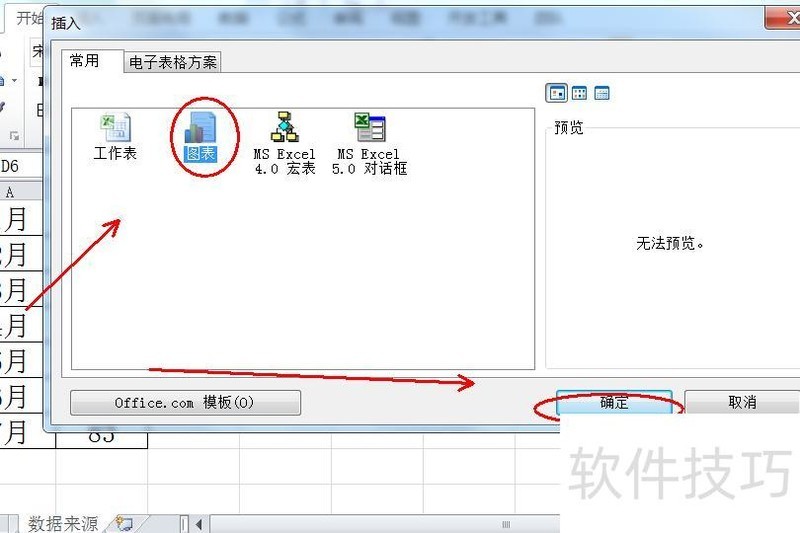 在弹出的对话框中选择图表,再点击确定。