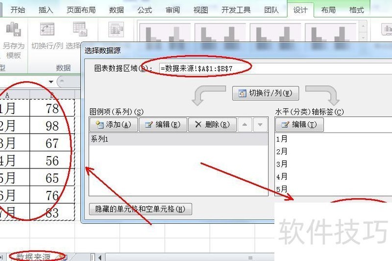 选取用于生成图表的数据范围。